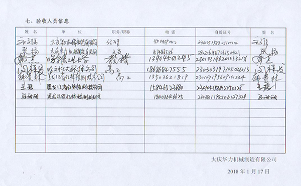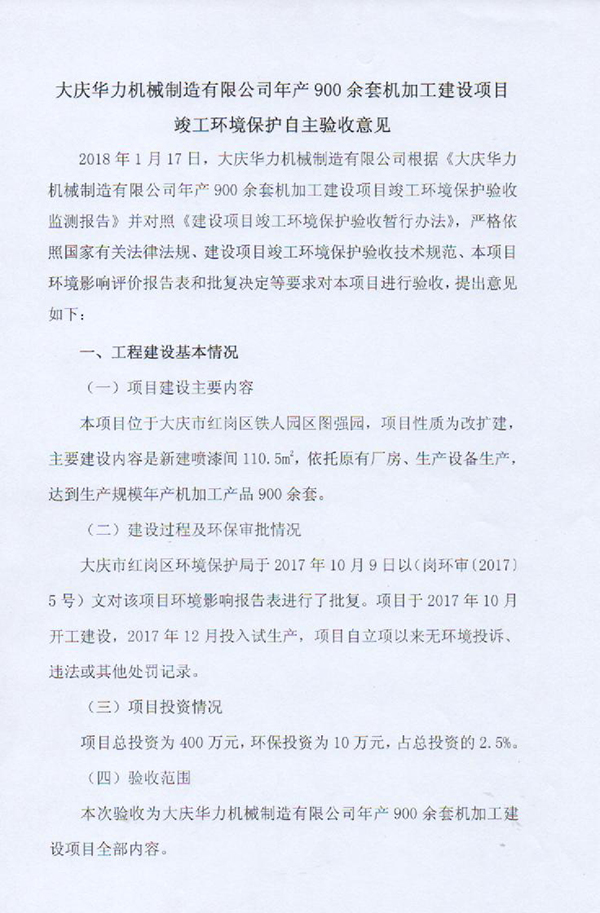 大慶華力機械制造有限公司年產900余套機加工建設項目自主驗收公示